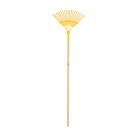 ESCOBA METÁLICA PARA JARDÍN, CURVA, 20 DIENTES, MANGO 48″