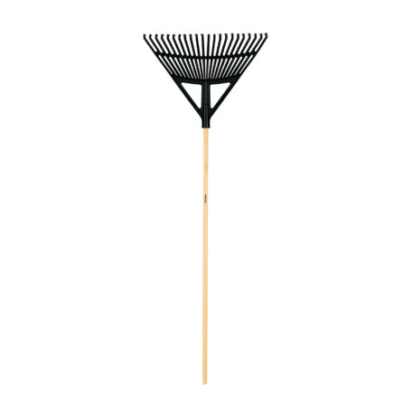 ESCOBA PLÁSTICA FLEXIBLE PARA JARDÍN, 22 DIENTES, MANGO 48″