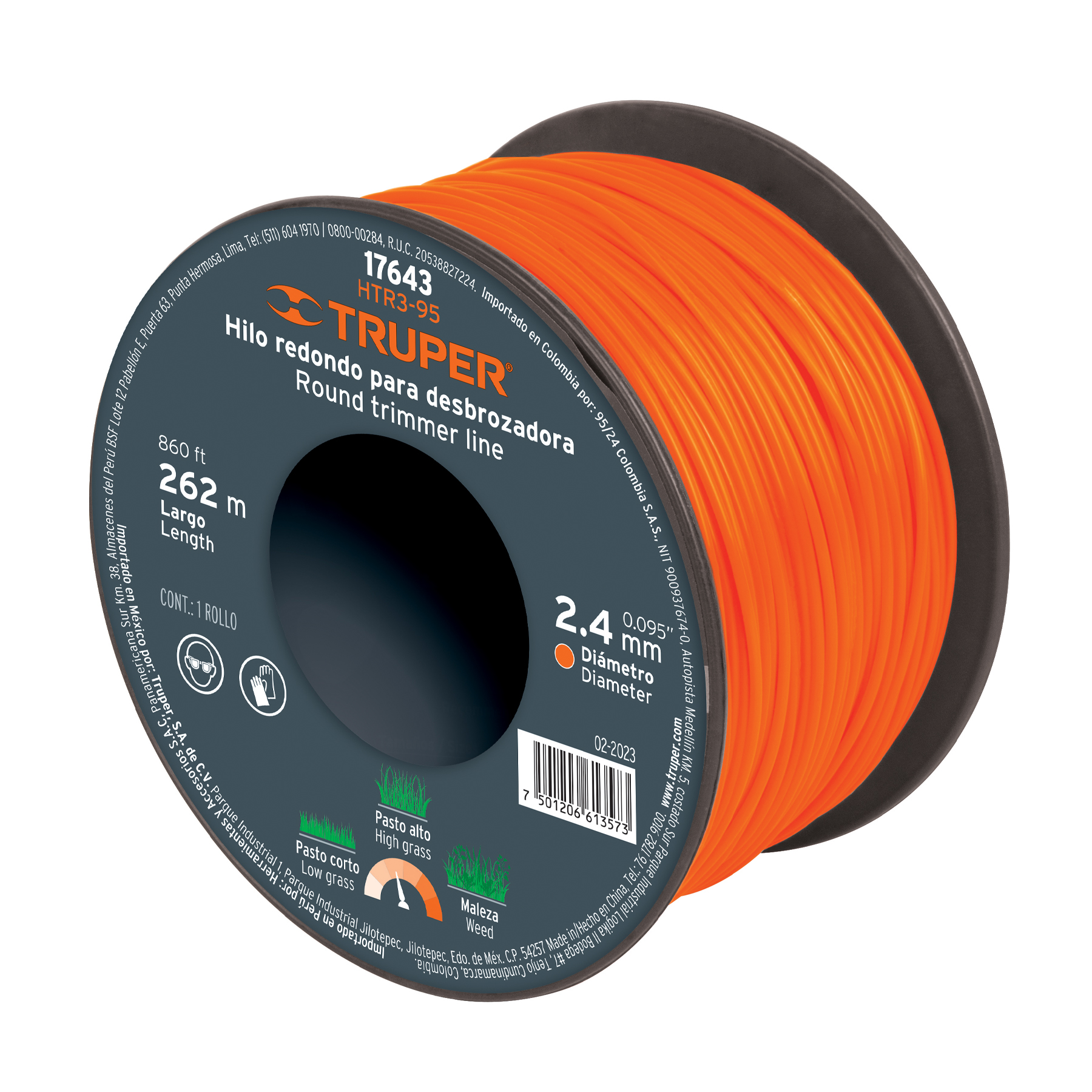 HILO REDONDO, PARA DESBROZADORA, 2.4MM X 262M,CARRETE