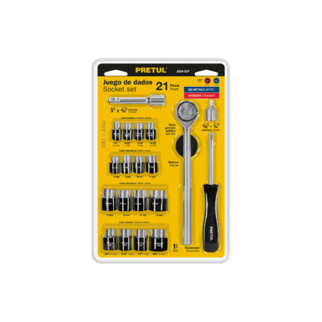 JUEGO DE 21 HERRAMIENTAS 1/4″ Y 3/8″ PARA MECÁNICO