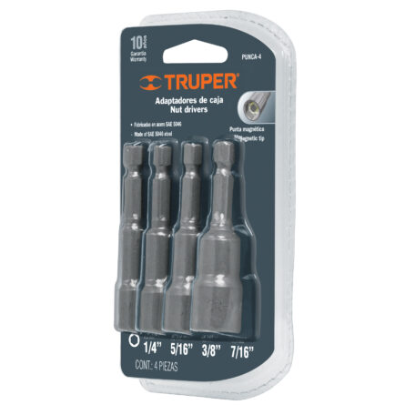 JUEGO DE DADOS MAGNÉTICOS PARA TALADRO, 4 PIEZAS EN BLISTER